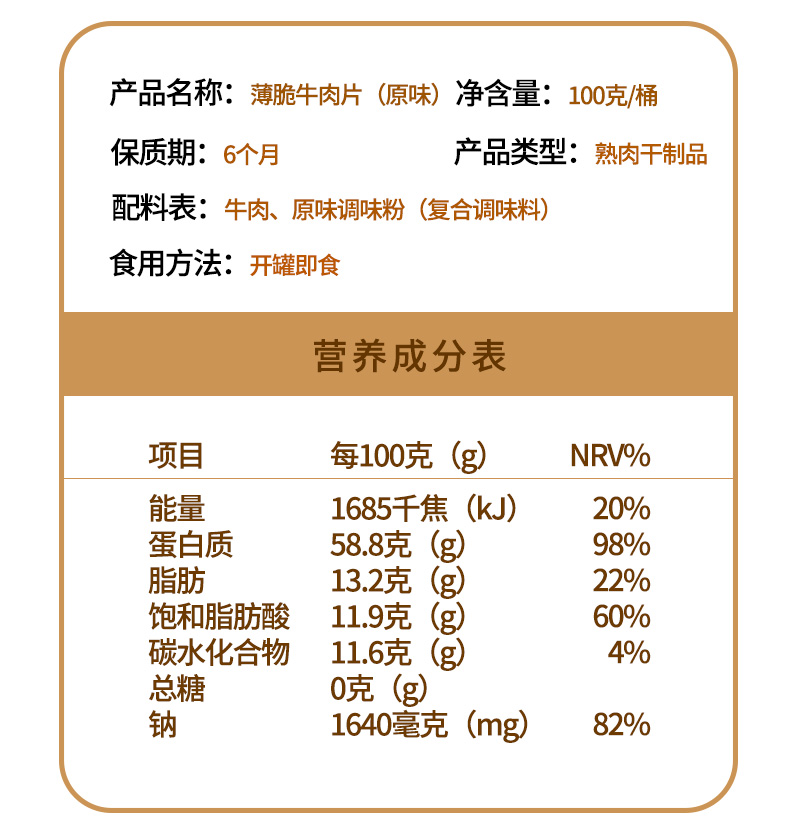 天生好果牛肉薄脆片(原味)100克100克