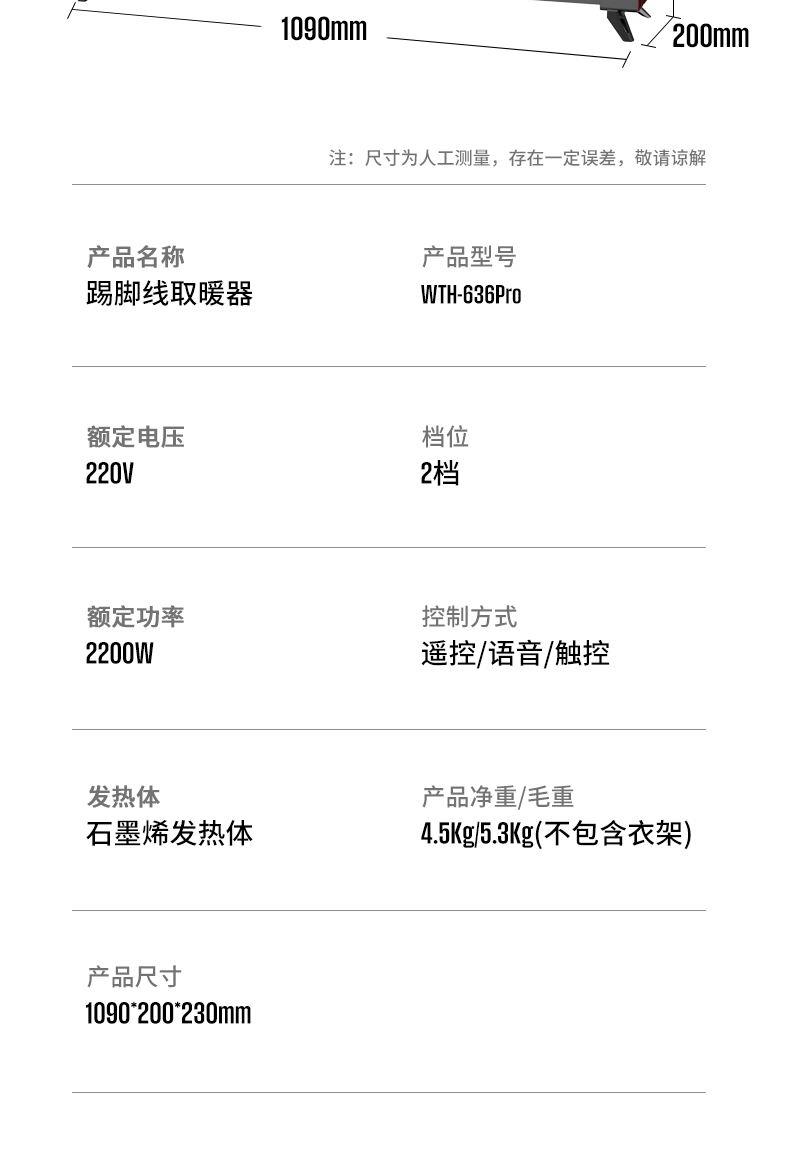 西屋踢脚线取暖器WTH-636Pro